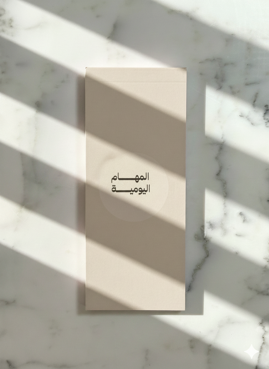 ابدأ يومك بوضوح وتركيز مع دفتر متابعة المهام اليومي، صُمم بعناية ليمنحك إحساسًا بالإنجاز والرضا في كل مهمة تنجزها. يمنحك الدفتر مساحة مخصصة لكتابة المهام اليومية، ومساحة أخرى مخصصة لتدوين الملاحظات اليومية