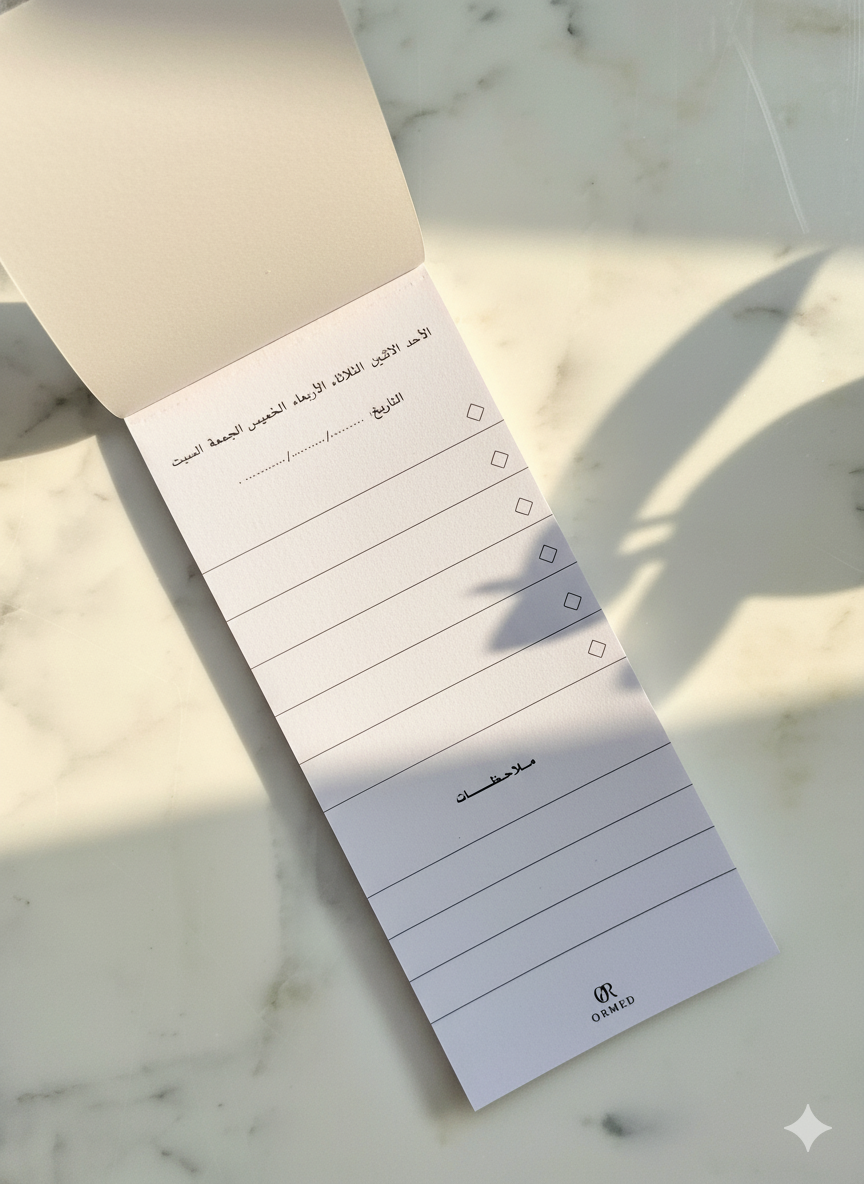 في حال رغبت في خلق روتين منتظم، هذا الدفتر سيكون رفيقك في تدوين مهامك اليومية.